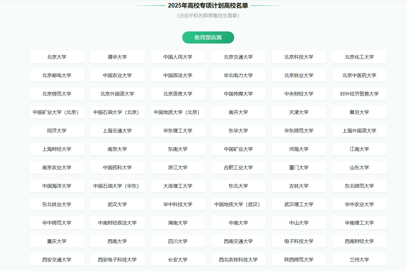 由于篇幅所限,本文仅对部分高校高校专项计划招生简章进行了展示。其余院校的招生简章、具体报名时间及相关要求,考生可通过汇总页面统一查询,查看:95所高校高校专项计划招生简章完整名单,以获取更全面、准确的官方信息,便于结合自身条件进行系统对比与合理选择。