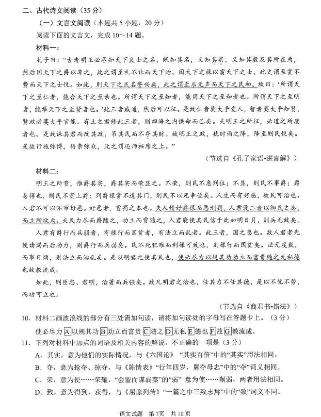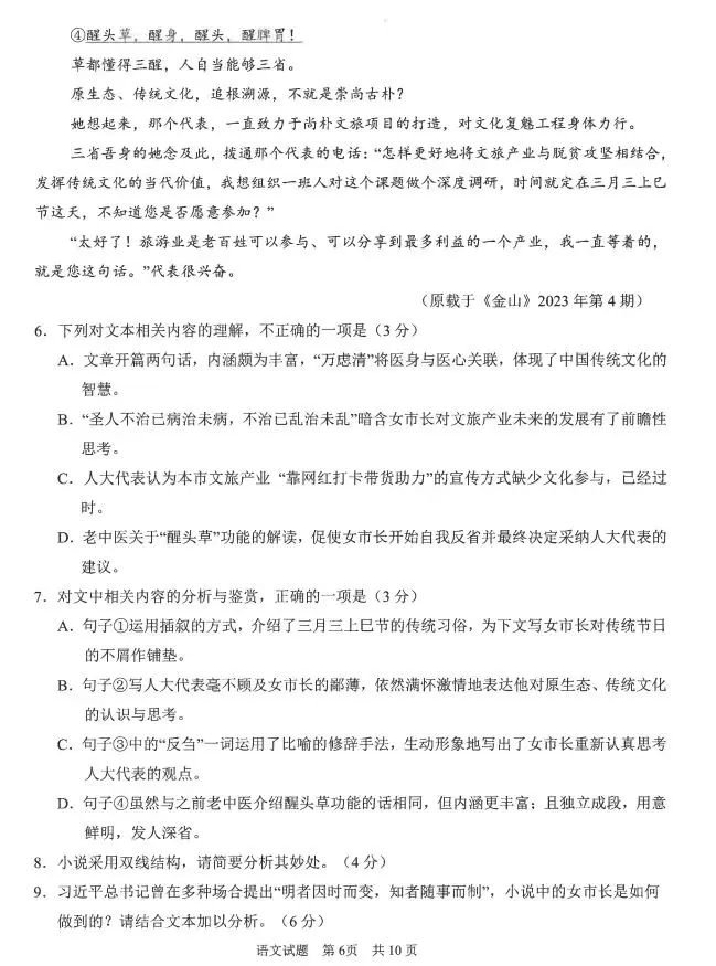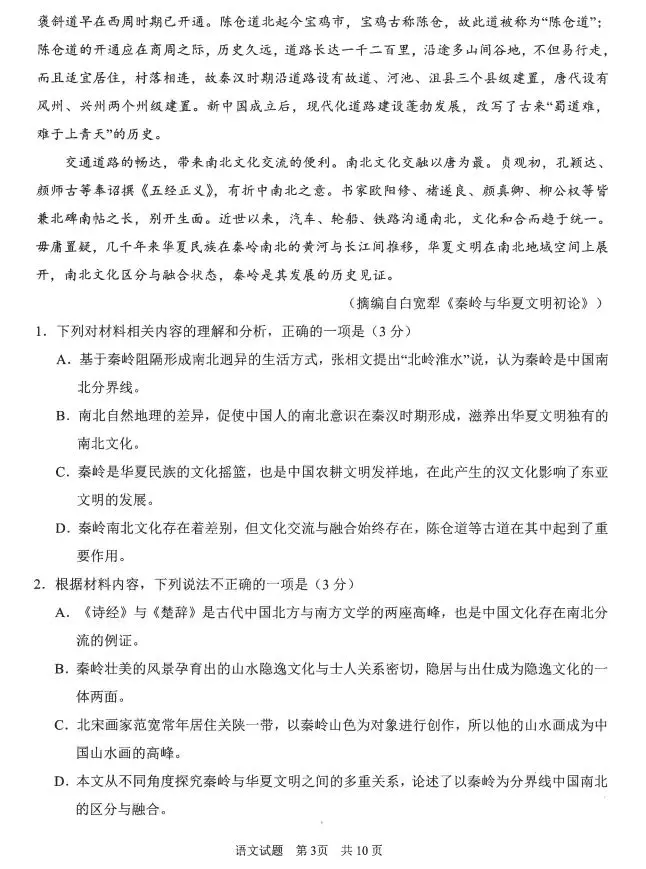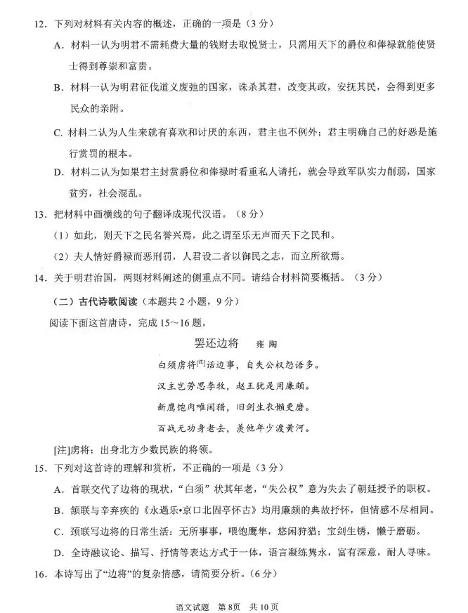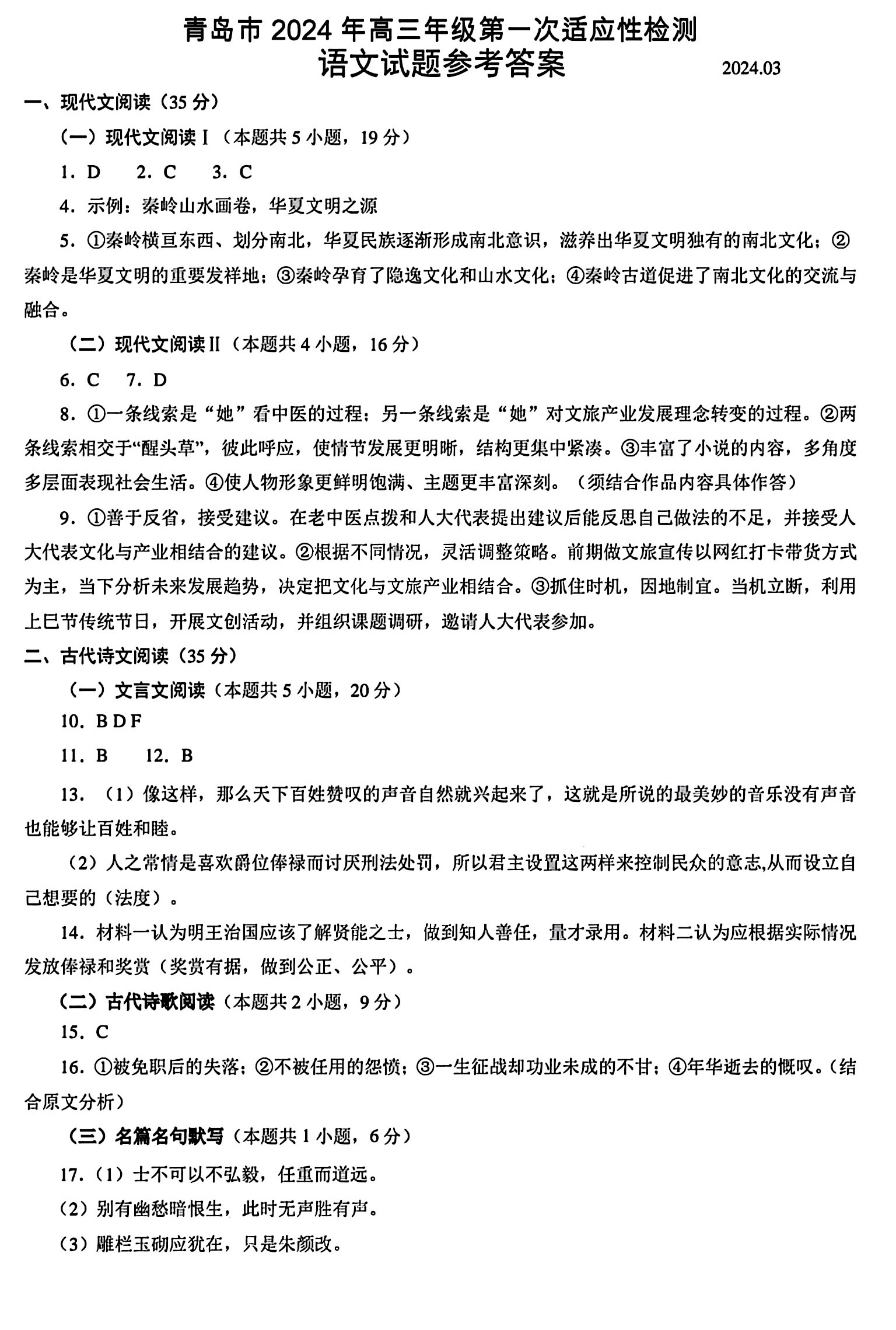 1.2024山东青岛一模语文答案