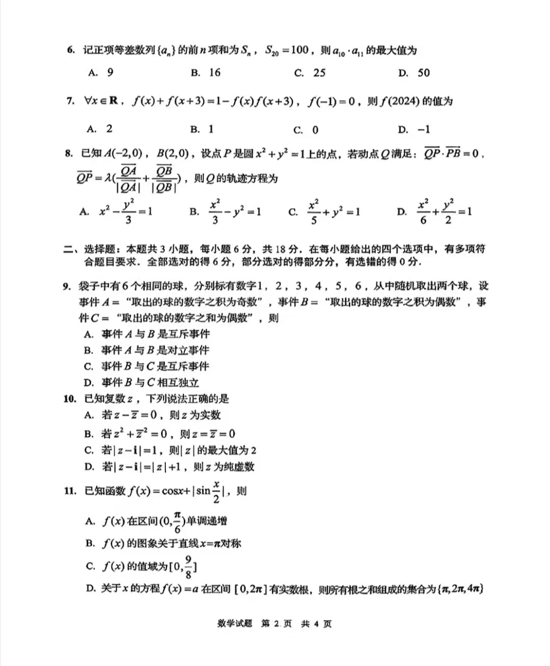 2.2024山东青岛一模数学答案
