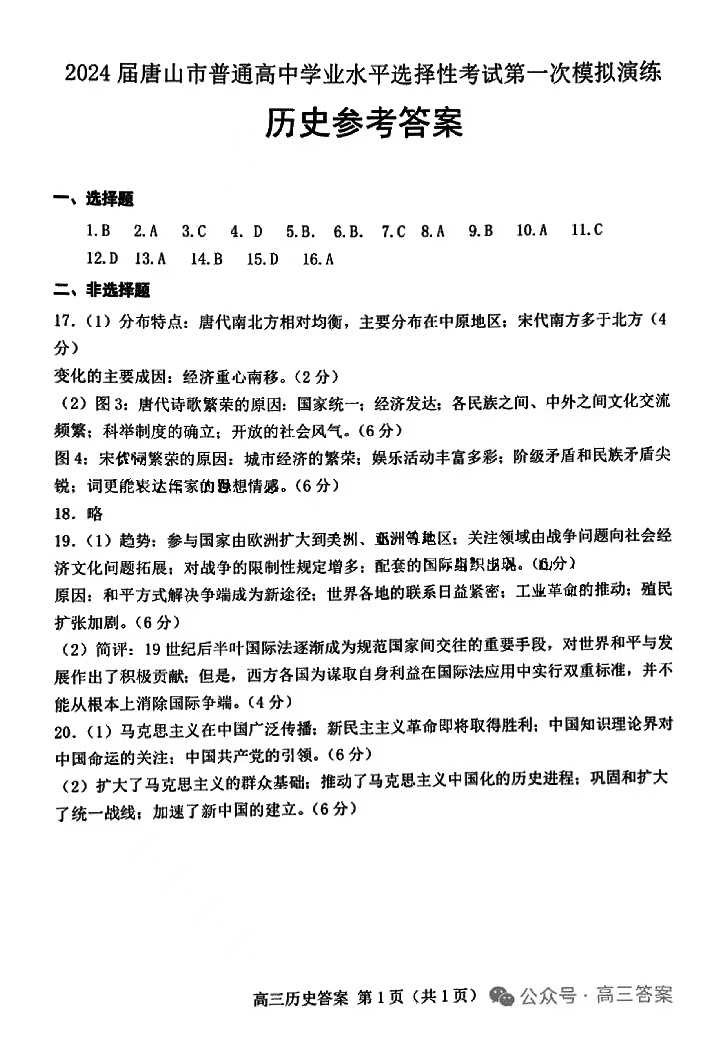 5.2024山东青岛一模历史答案