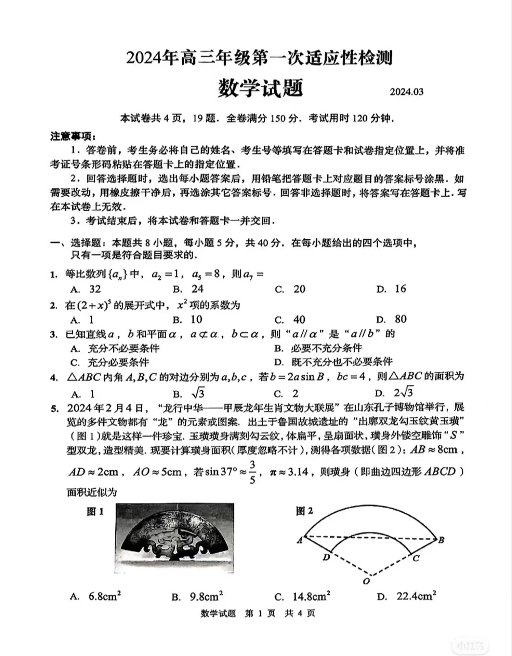 二、2024年山东青岛一模各科答案及试卷